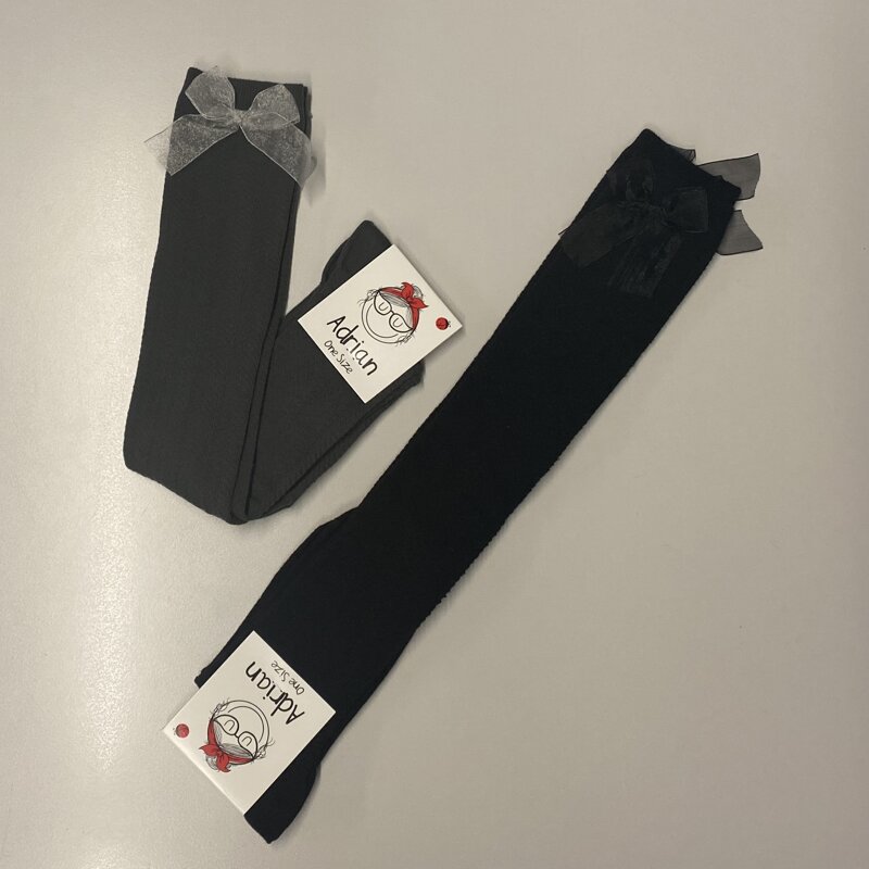 Calza sopra il ginocchio, lavorata con fiocco applicato .